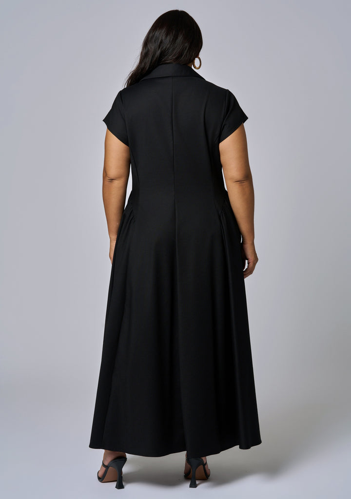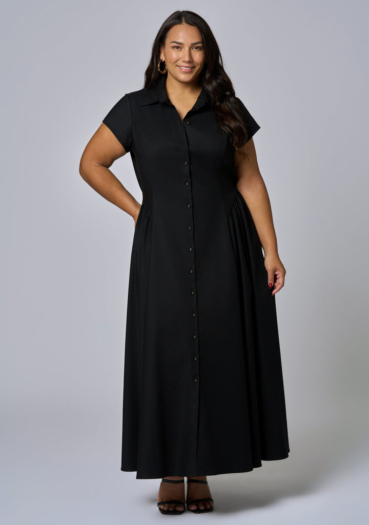 Effortless refinement defines the Clara Maxi Shirt Dress by Something 4 Olivia, featuring a collared neckline, button front and a flowing full skirt. Statement side panels elevate its clean, tailored silhouette.