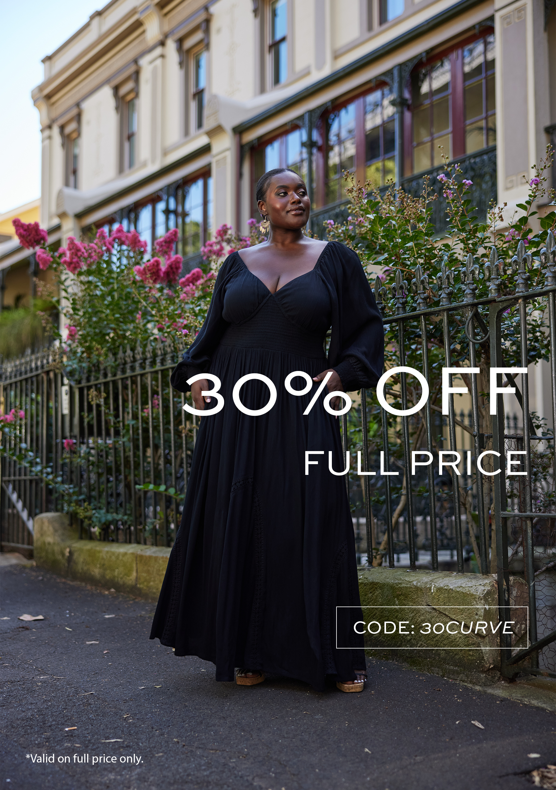Our model is wearing a size AU 16. She is 170cm (5'7") tall with a 105cm (41.5") bust, a 102cm (40") waist and 116cm (45.5") hips.