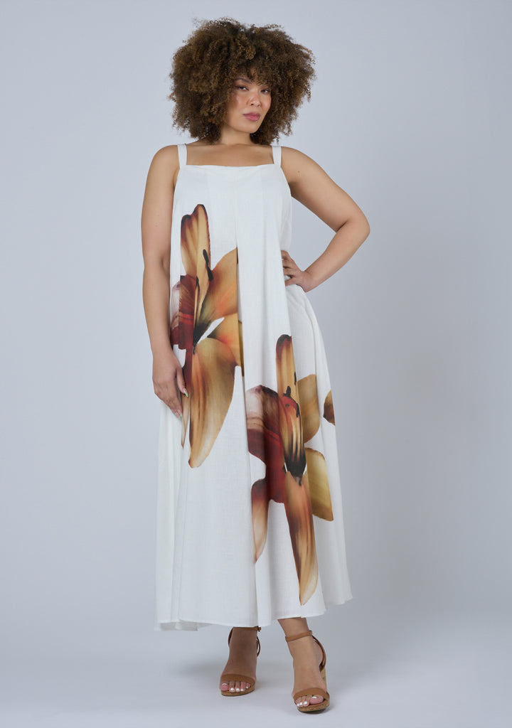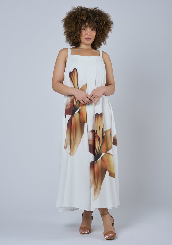 The Emmeline Maxi Dress by Something 4 Olivia showcases a stunning oversized floral print in subtle earthy tones. Its relaxed fit, sweeping hemline and sleeveless profile make it a timeless daytime showstopper.