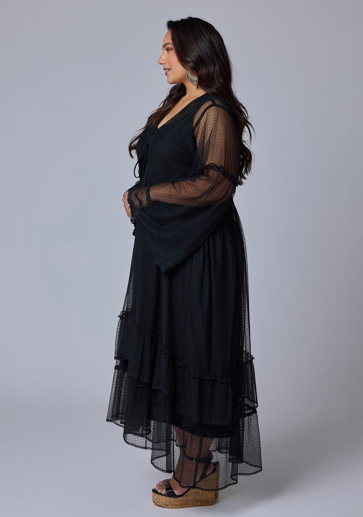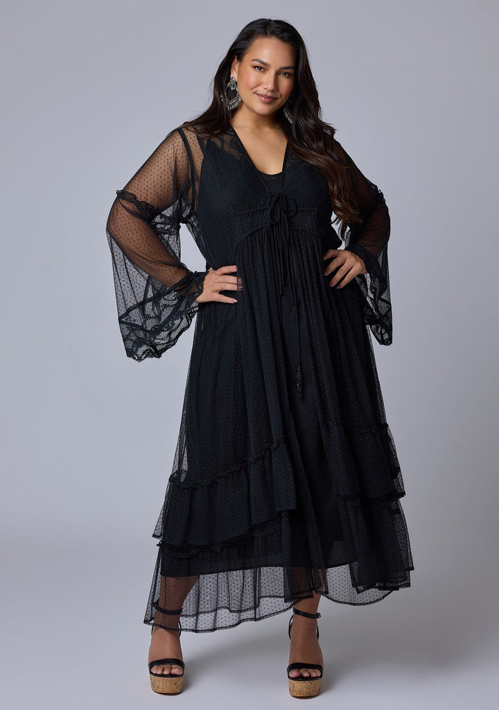 Boho charm comes to life in the Harmonic Halo Maxi Dressby The Poetic Gypsy. Delicate lace overlays, a tie-front design and a sheer slip bring floaty femininity to this full-length style.