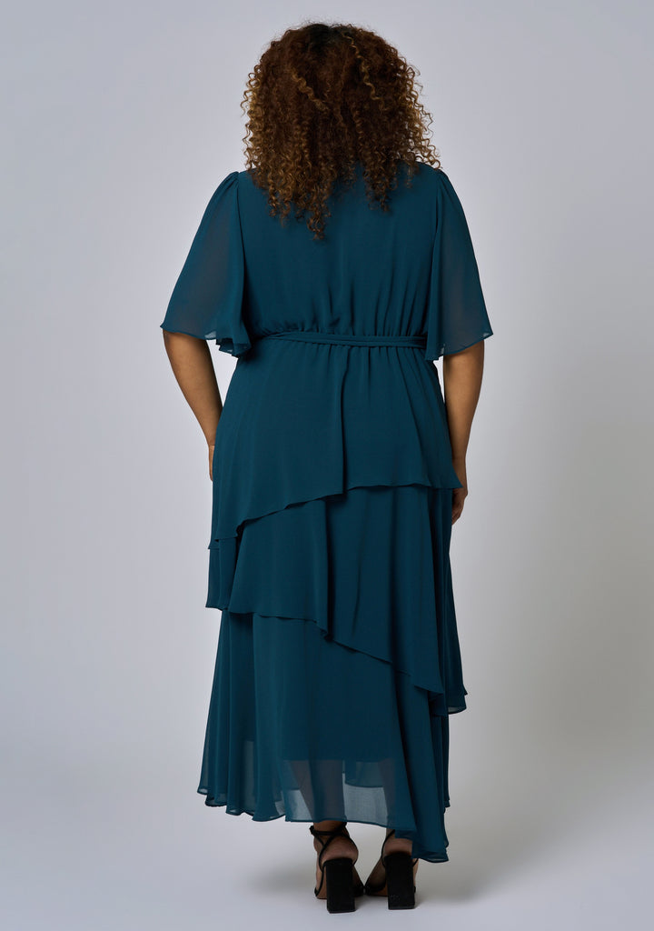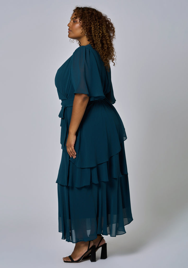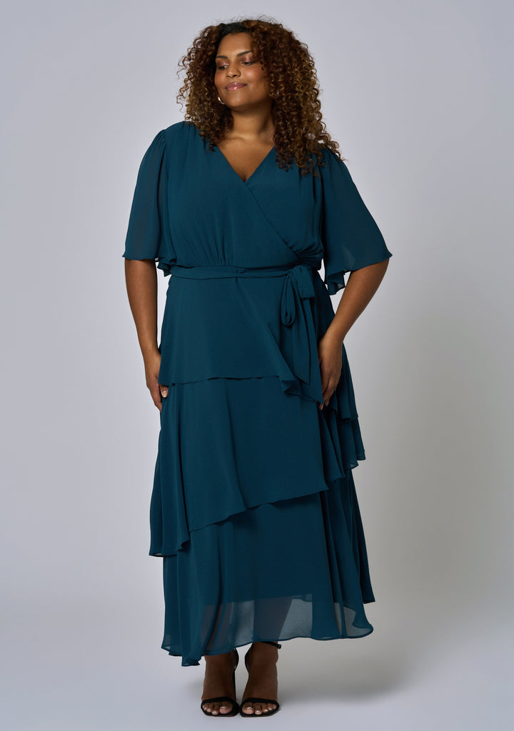 Crafted from a delicate woven cloth in an on-trend print, this dress features a layered skirt silhouette, wrap neckline and flutter sleeves for that ultimate wow factor. The Hypnotic Maxi Dress from Pink Dusk pays homage to the must have dress.
