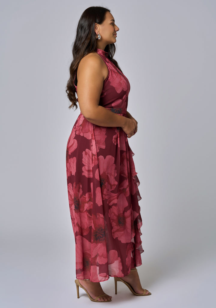 Turn heads at a summer wedding or special event in the Kiss Kiss Maxi Dress by Pink Dusk. Featuring a halter neck, flirty ruffle hem detail paired with a feminine floral print, it's designed to elevate every entrance.