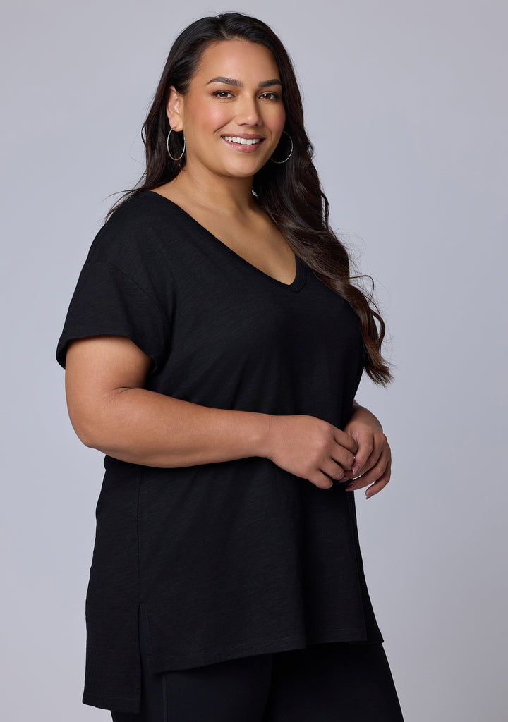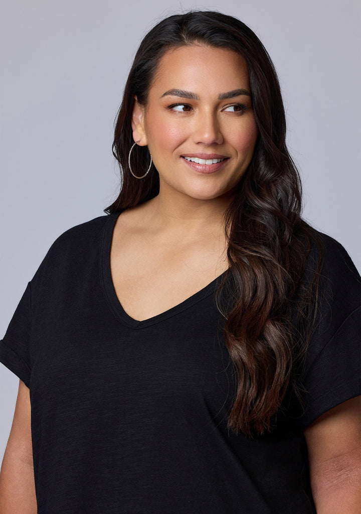 Easy going and endlessly versatile, the Megan Slub Teeby Indigo Tonic is a classic V-neck silhouette with short sleeves and a soft slub textured finish. It’s an essential base layer for casual looks and weekday layering.