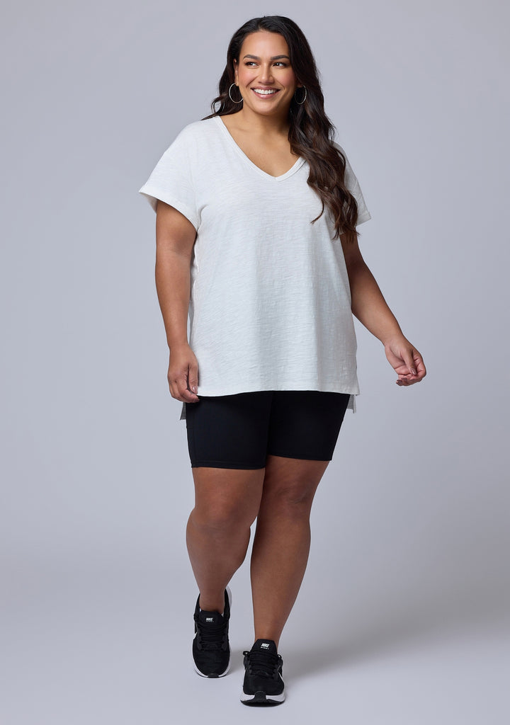 Easy going and endlessly versatile, the Megan Slub Tee by Indigo Tonic is a classic V-neck silhouette with short sleeves and a soft slub textured finish. It’s an essential base layer for casual looks and weekday layering.