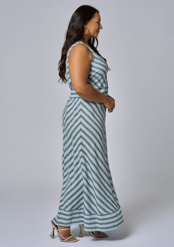 Sage Striped Linen Maxi Dress