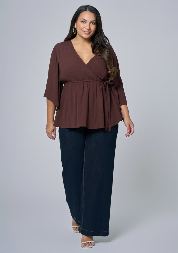 Style with your favourite light wash jeans for that ultimate on-trend appeal. Featuring a side wrap detail and kimono sleeve and crafted from a crinkled woven fabrication, the Salma Wrap Blouse from Something 4 Olivia, fuses a feminine silhouette with on-trend appeal.