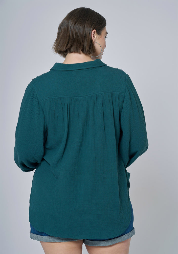 This item is part of the plus size blouse range, which is designed to complement and flatter fuller figures.