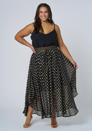 The Sunkissed Dreams Maxi Skirt from The Poetic Gypsy featuring shirred waistband and panelled skirt that exudes movement and drama. Adorned with delicate gold thread embroidery this skirt is designed to exude the party season whilst still embodying the boho lifestyle.
