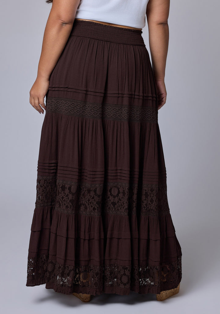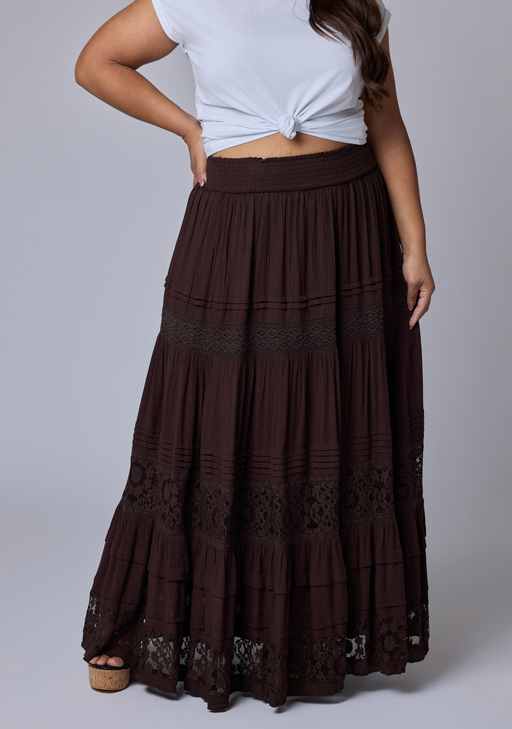 Whimsical and romantic, the True Faith Maxi Skirt by The Poetic Gypsy features lace detail and a soft, sweeping hemline. A shirred waistband ensures effortless comfort.