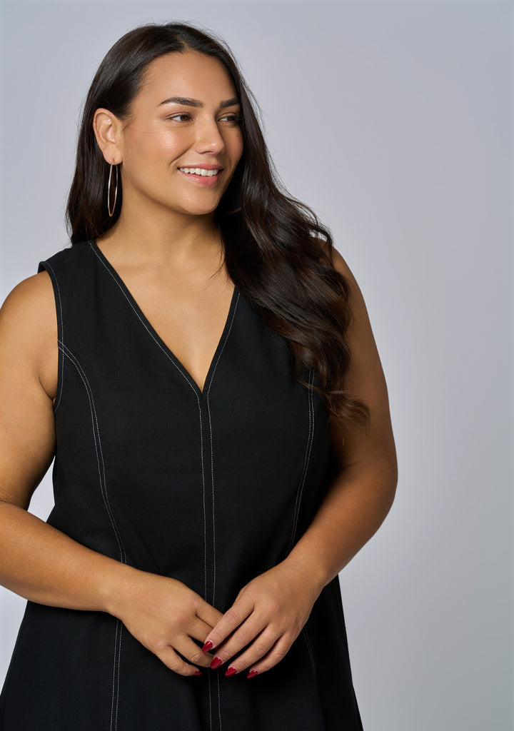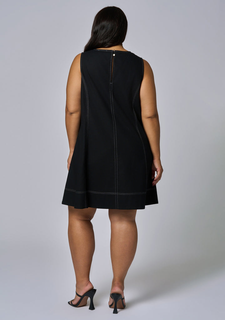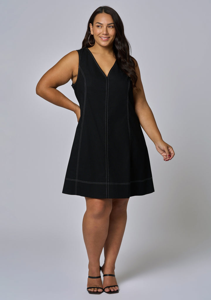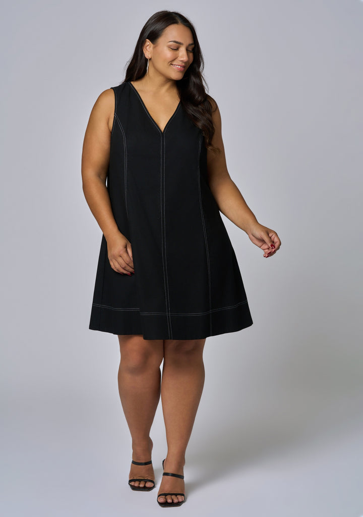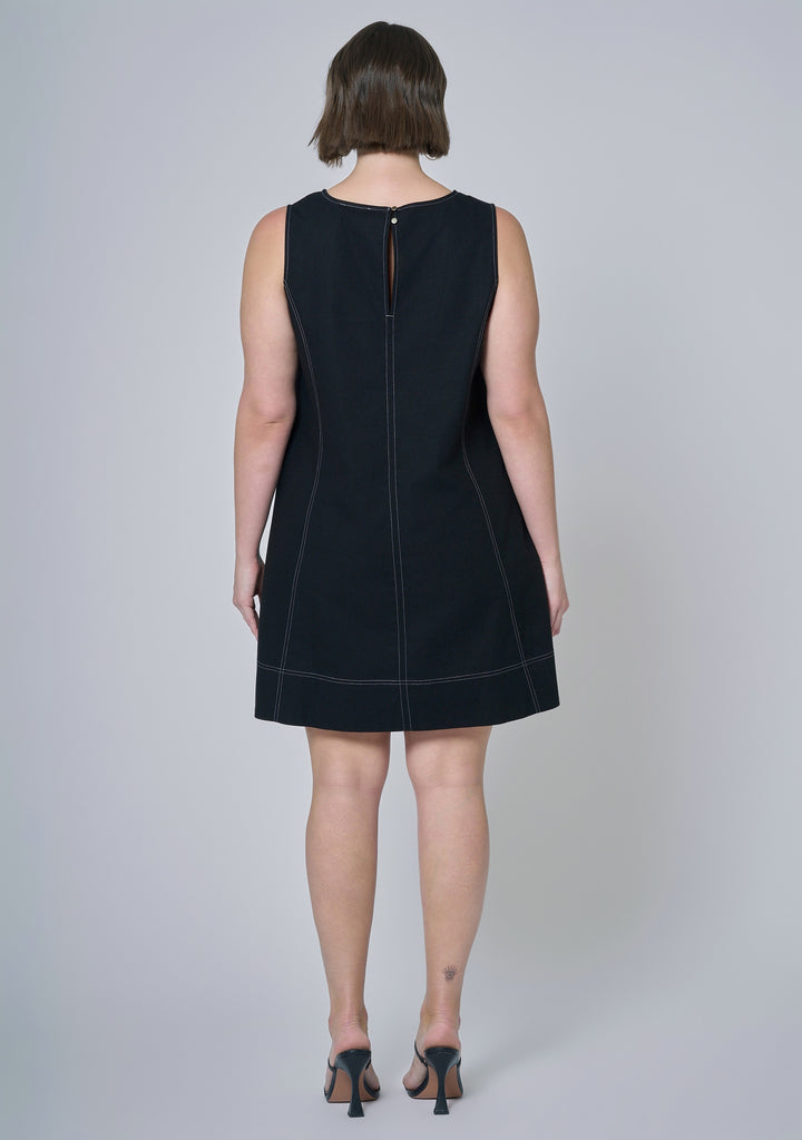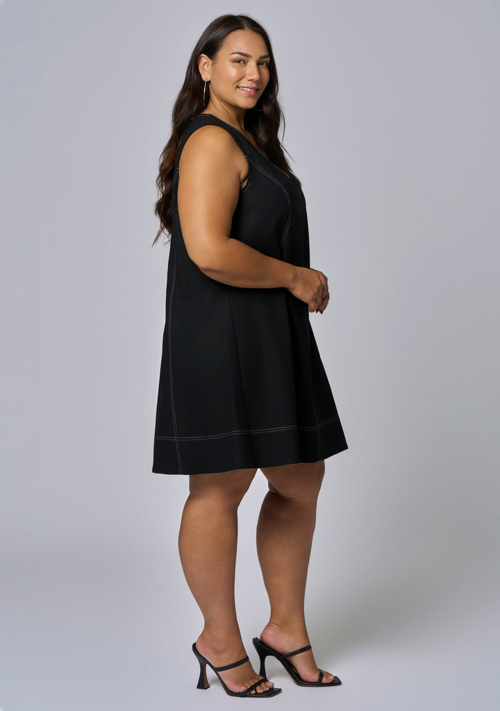 Make a statement in the Venom Mini Dress by Sunday In The City — a sleeveless A-line design with contrast stitching and a deep v-neck. This elevated mini is your go-to for dressing up or down on any occasion.