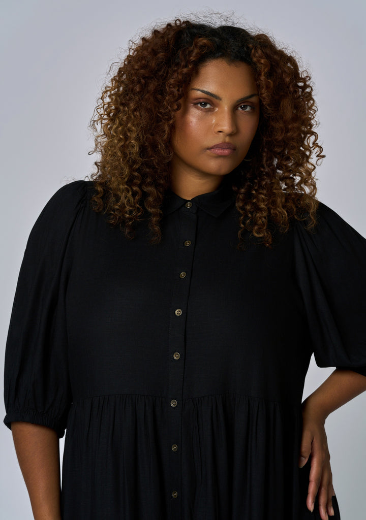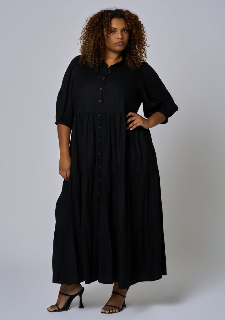 Relaxed polish defines the Wild Halo Midi Shirt Dress by Sunday In The City, featuring a button-front shirt design and softly tiered skirt. Three-quarter sleeves and a collared neckline give it an easy, everyday sophistication.